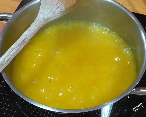 Dica: O tempo de fervura é de aproximadamente 10 a 15 minutos, até a calda atingir a consistência desejada. Se começar a queimar, reduza o fogo e mexa com mais frequência.