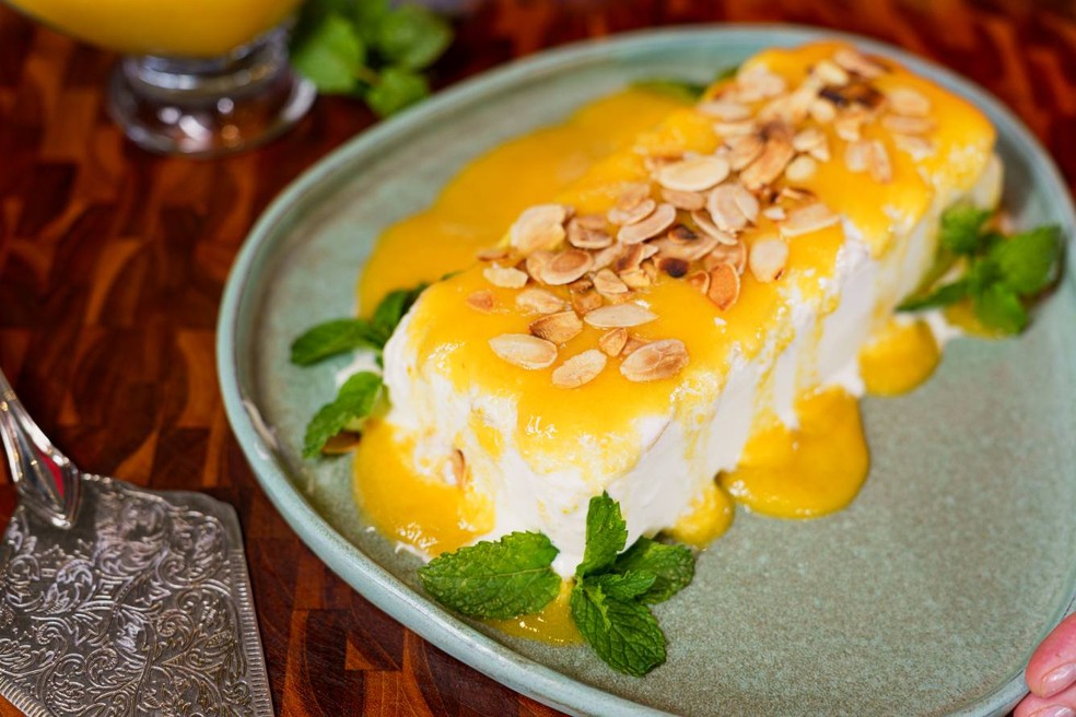 Sobremesa gelada fácil para as ceias de fim de ano: semifreddo de pêssego em calda