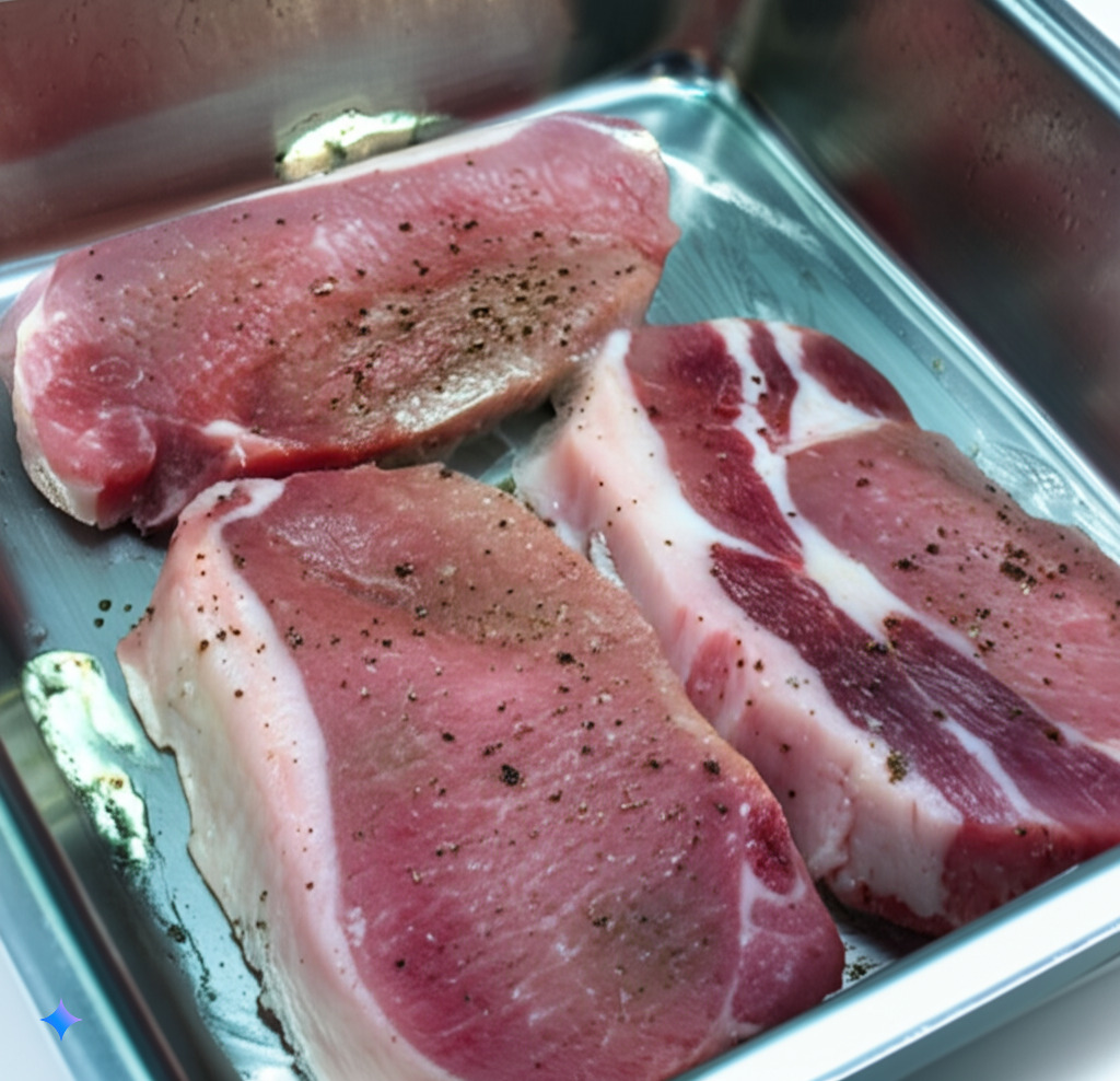 1-A aventura culinária começa agora! Prepare a receita do virado à paulista tradicional, um passo de cada vez. Iniciamos com a carne: tempere as bistecas com pimenta-do-reino e mergulhe-as em um abraço de salsinha e suco de limão. Deixe descansar por pelo menos 30 minutos. Um toque especial para um sabor ainda mais intenso!