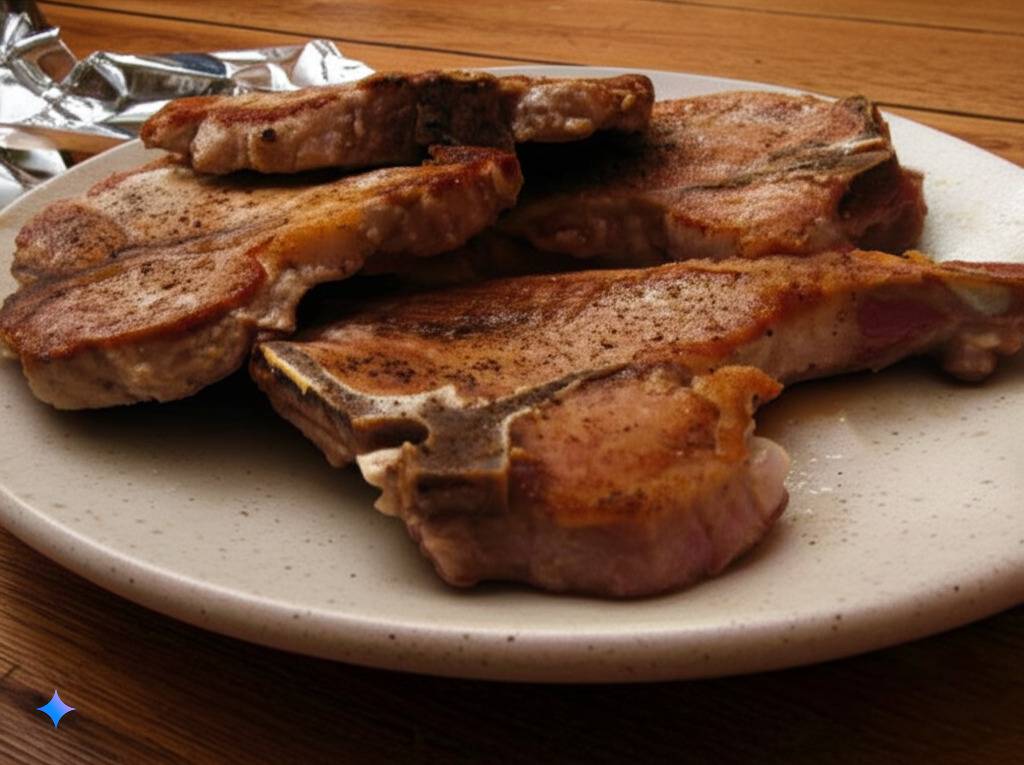 5-Chegou a hora da bisteca! Tempere com sal e escolha o seu método predileto: fritar ou grelhar. Ambas as opções são perfeitas para o nosso querido virado à paulista tradicional.